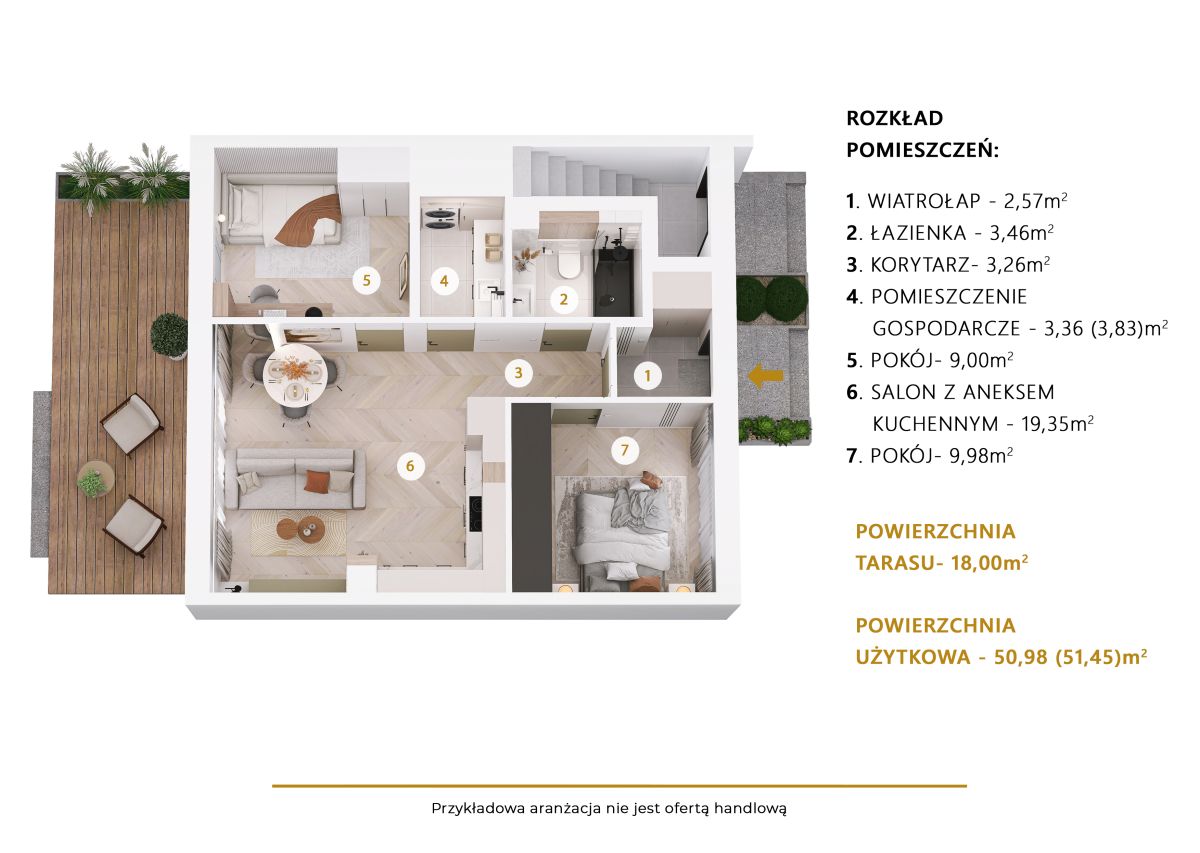 - Elegancki, wygodny i funkcjonalny układ pomieszczeń